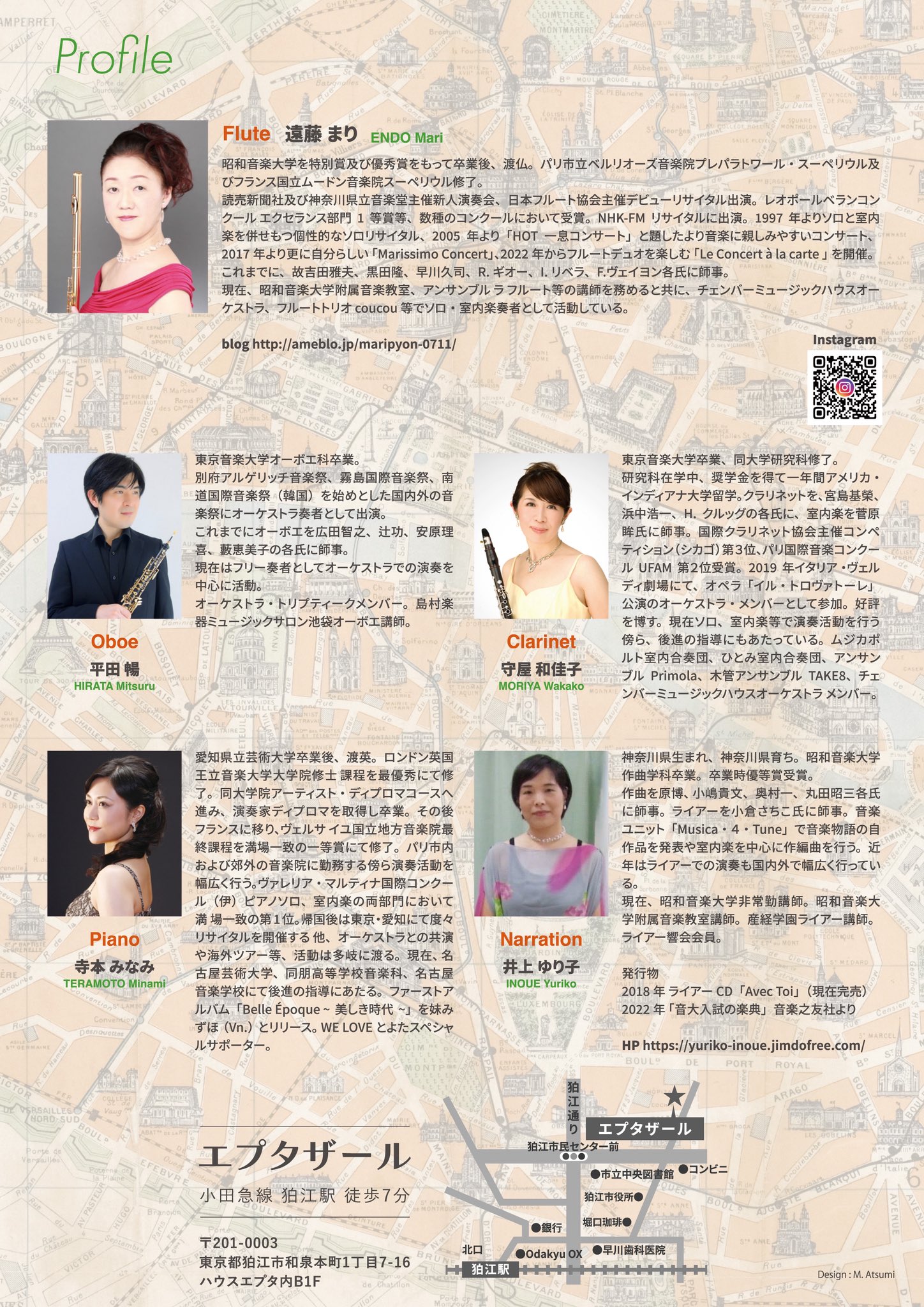 | はぐれフルートアンサンブルの出没情報をはじめ、 仲良くして下さるアンサンブルグループや 演奏家の方々のコンサートなどをお知らせします。 |